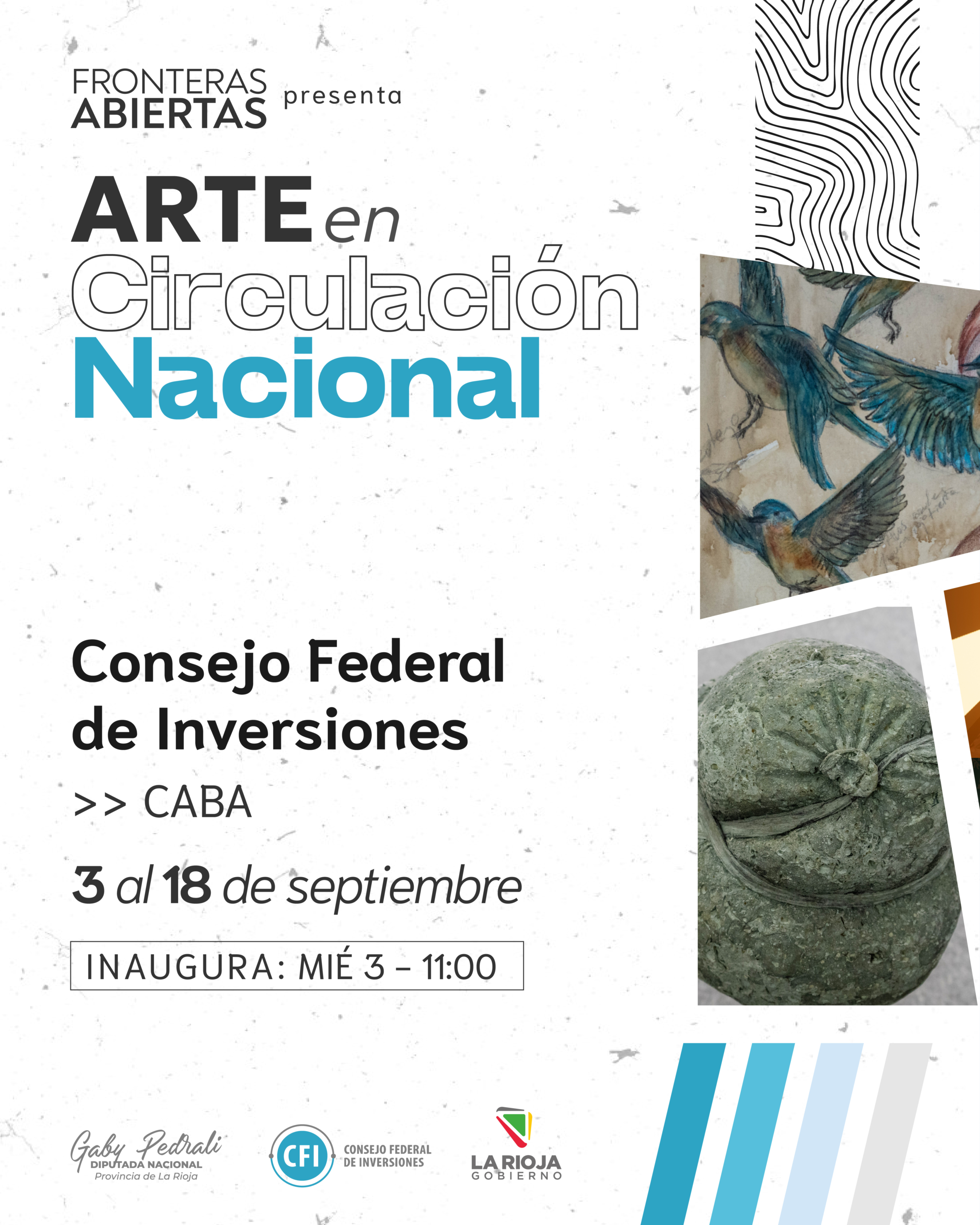“Fronteras Abiertas” impulsado por la diputada nacional, Gabriela Pedrali, en un trabajo articulado con el CFI y con el apoyo del Gobierno de La Rioja, inaugura una nueva exposición en la Ciudad Autónoma de Buenos Aires, con producciones de artistas riojanas y riojanos. En esta oportunidad, se presentará la muestra colectiva “Lo que habita entre sueños y memorias” en las salas del Consejo Federal de Inversiones en la Ciudad Autónoma de Buenos Aires, una propuesta que es parte del ciclo de “Arte en Circulación Nacional” del programa de difusión de las artes y culturas riojanas.