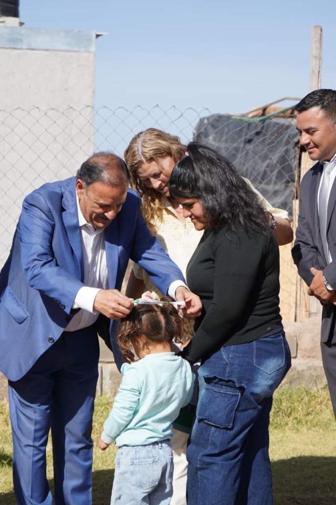 La actividad se realizó en el marco de la visita de la legisladora nacional al Departamento, acompañada por el Intendente Jorge Salomón junto al equipo municipal, el diputado provincial Fabián Gauna, el Intendente de Facundo Quiroga Ariel Bejarano, el equipo técnico de la Unidad Ejecutora del Plan Angelelli, la familia beneficiaria.