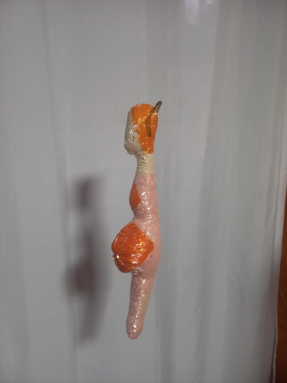 Objetos textiles que resignifican el cuerpo femenino en clave de resistencia. Inspirada en figuras prehispánicas y en la obra de Liliana Maresca, Yesica Costa crea diosas-herejes que desafían la mirada patriarcal y reescriben el relato de lo sagrado desde el arte textil.